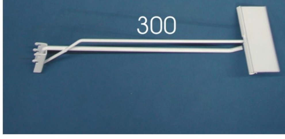 Gancho Scaner para usar en estanterías con fondos perforados. Color blanco .
