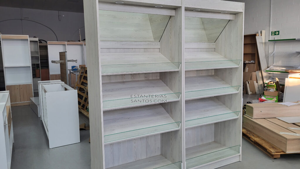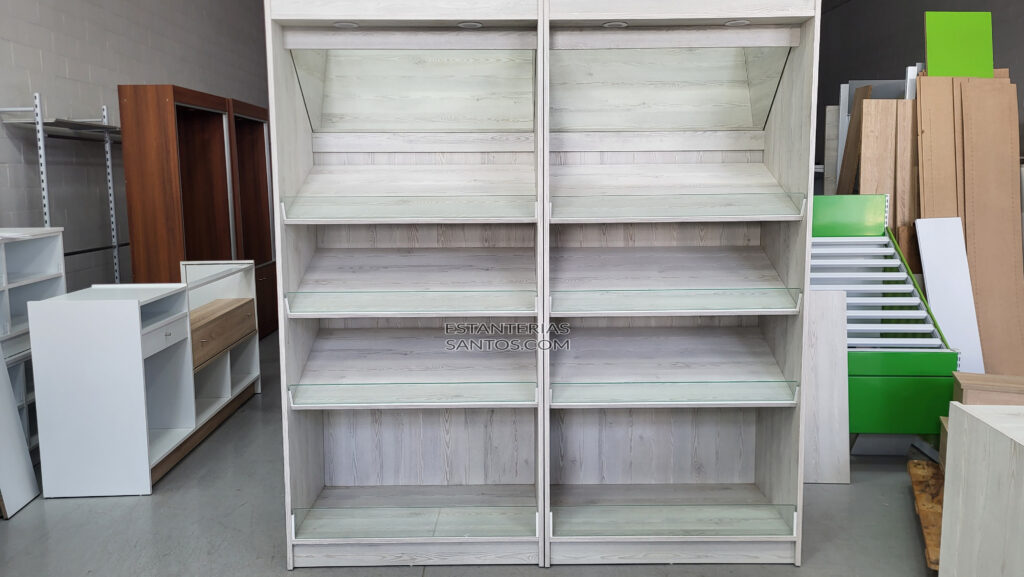 Estantería panadería tipo 1- A con iluminación de 1,00m largo x 2,20m alto x 0,55m fondo con espejo incluido.